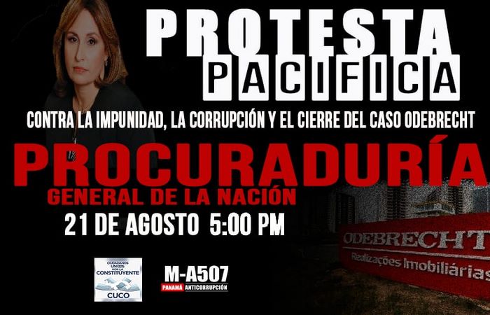 Contra la impunidad, la corrupción y por la falta de claridad en la investigación del caso Odebrecht, movimientos ciudadanos han convocado una protesta pacífica en Panamá para este 21 de agosto a las 5 p.m.