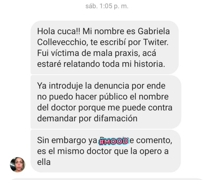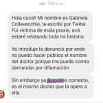 Repito: Gabriela nunca ha mencionado. Nombre del cirujano y por eso es que debe ser investigado pero mi deber es dar a conocer este caso. Parte del temor es porque Froilan, el presunto autor está apoyado, entre otros por Antonio Chambra (traki) y por otros. Lo explicaré adelante