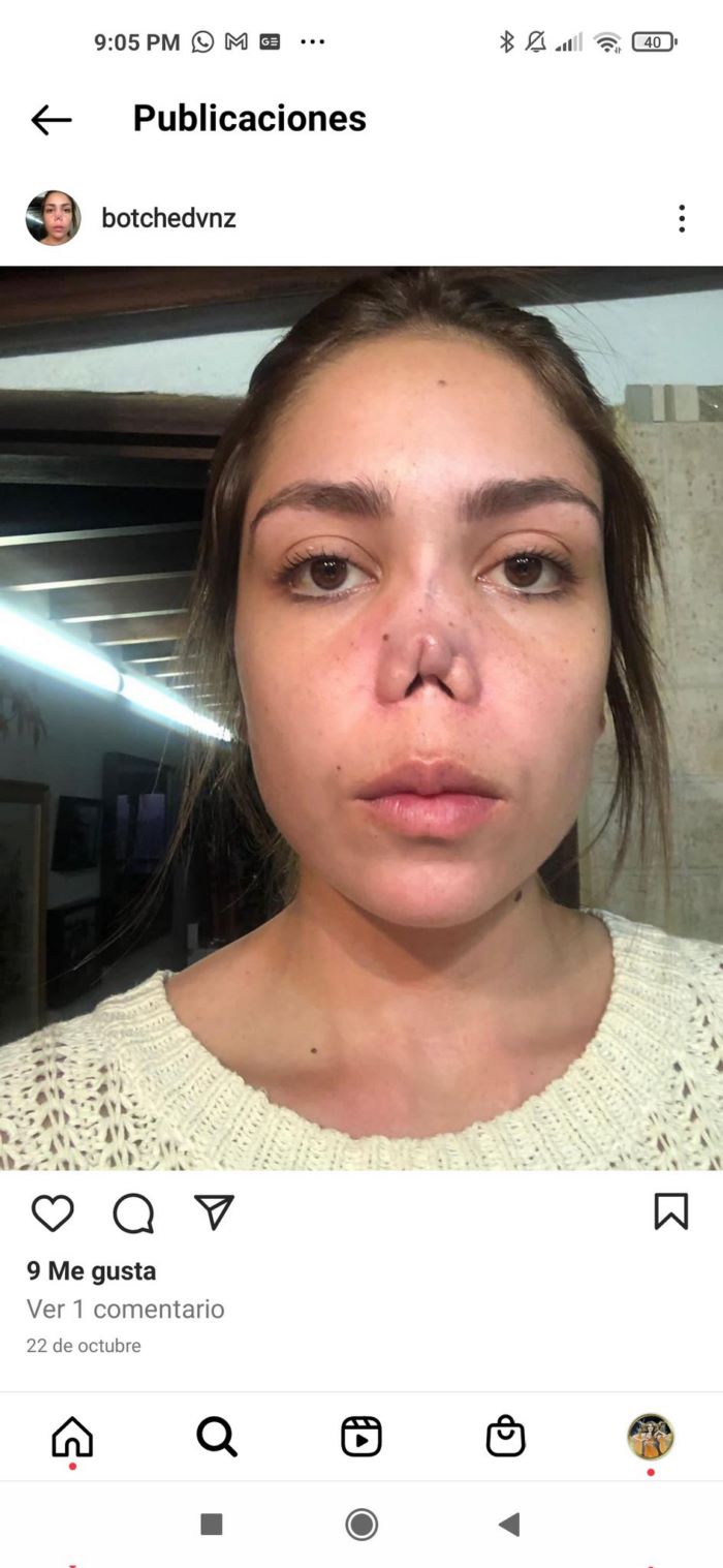 Y repito: fíjense lo sospechoso que es que cambia sus perfiles constantemente, en unos es otorrino, en otros no, por internet se anuncia como cirujano facial y luego no. Ma consecuencia? Miren el trabajo que tuvieron que hacerle a Gabriela para que pudiera tener una nariz.Sigo…