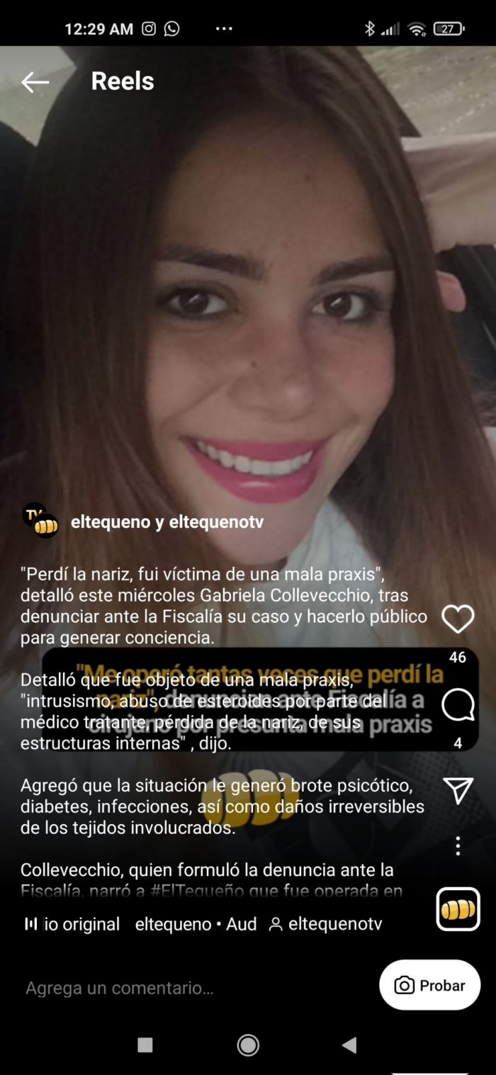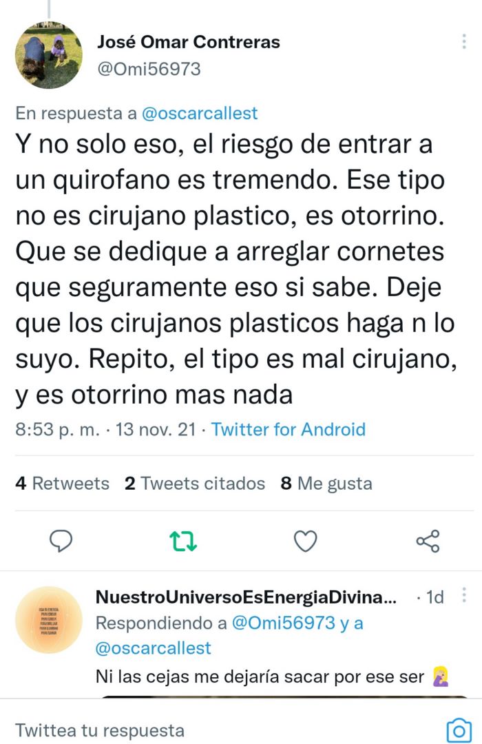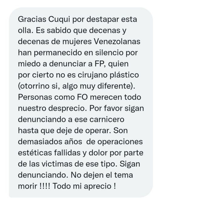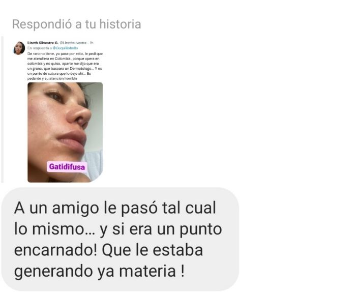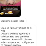 El modus operandi del sospechoso de estos hechos es promocionarse con operaciones que ha hecho a gente famosa y diciendo que quedaron súper naturales aunque evidentemente sea lo contrario. Y los famosos no dicen nada porque logran eso con “intercambios”. Y sigo…