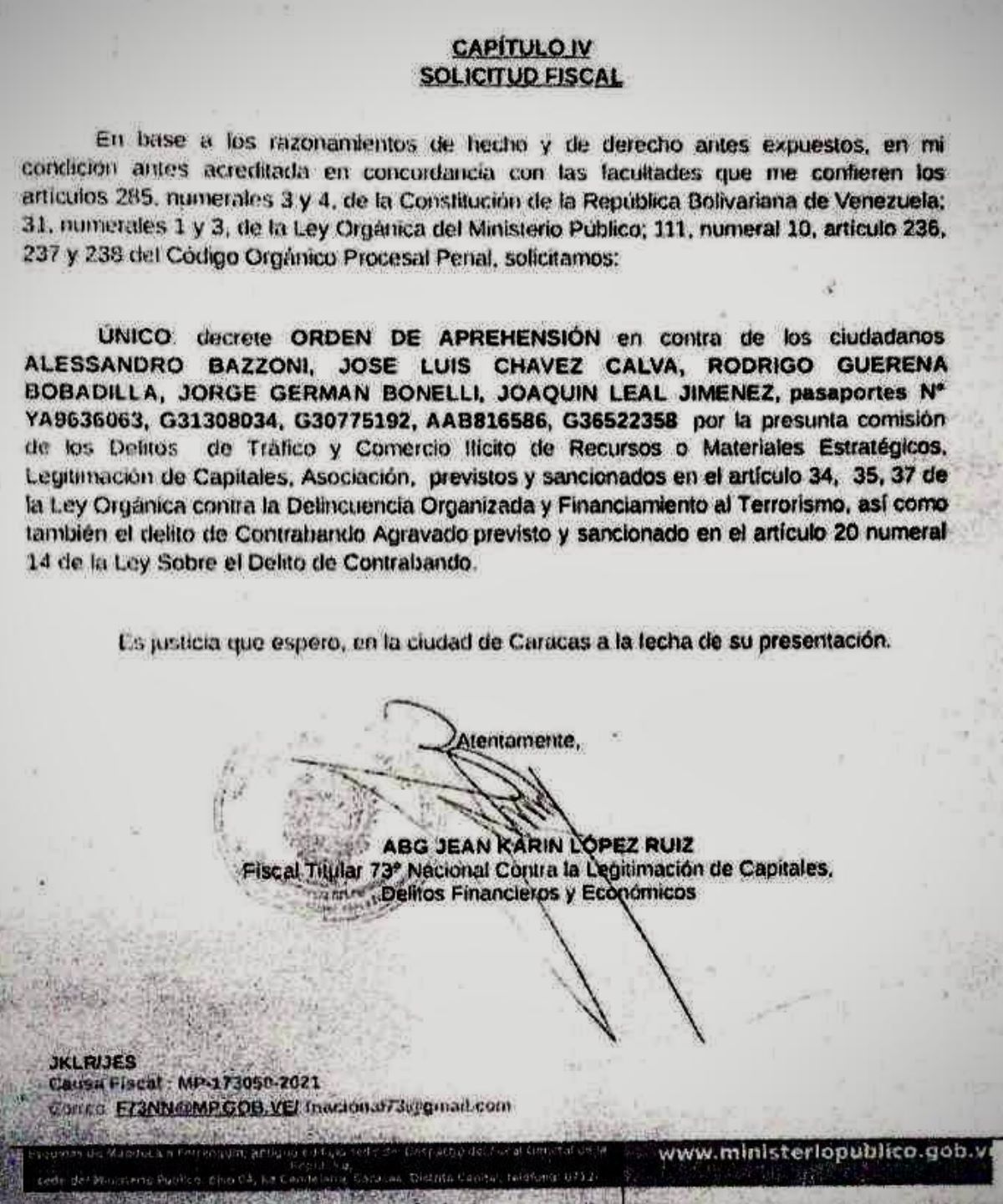 El 6 de junio de 2022, Jean Karin López Ruiz, Fiscal Provisorio 73° Nacional Contra la Legitimación de Capitales, Delitos Financieros y Económicos, del Ministerio Público venezolano, emitió una “boleta de notificación”, una especie de carta de buena conducta, a favor de la empresa chipriota Highmedsea Shipping, Ltd y su directora, la ciudadana griega Charalampia Gkoni. La notificación iba dirigida a Cesar Enrique Calzadilla Iriarte, abogado venezolano representante de la empresa chipriota. En el documento, se describe a Gkoni, cuyo nombre es femenino, como si fuera un hombre.